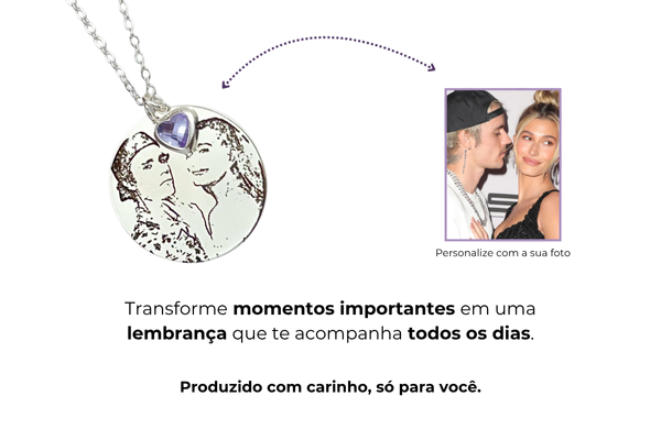 A fotogravação é um processo onde é gravado a laser a sua foto no pingente escolhido.