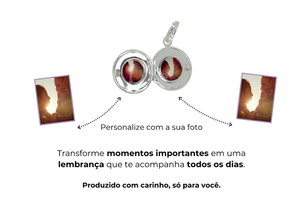 COLAR MINI RELICÁRIO REDONDO LOVE BANHADO A PRATA