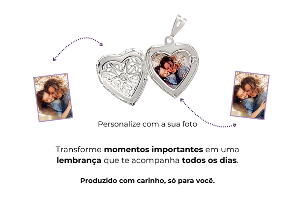 COLAR RELICÁRIO CORAÇÃO BORDADO BANHADO A PRATA