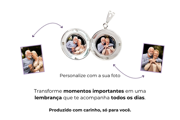 COLAR RELICÁRIO REDONDO VINTAGE BANHADO A PRATA