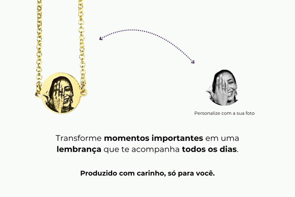 A fotogravação é um processo onde é gravado a laser a sua foto no pingente escolhido.